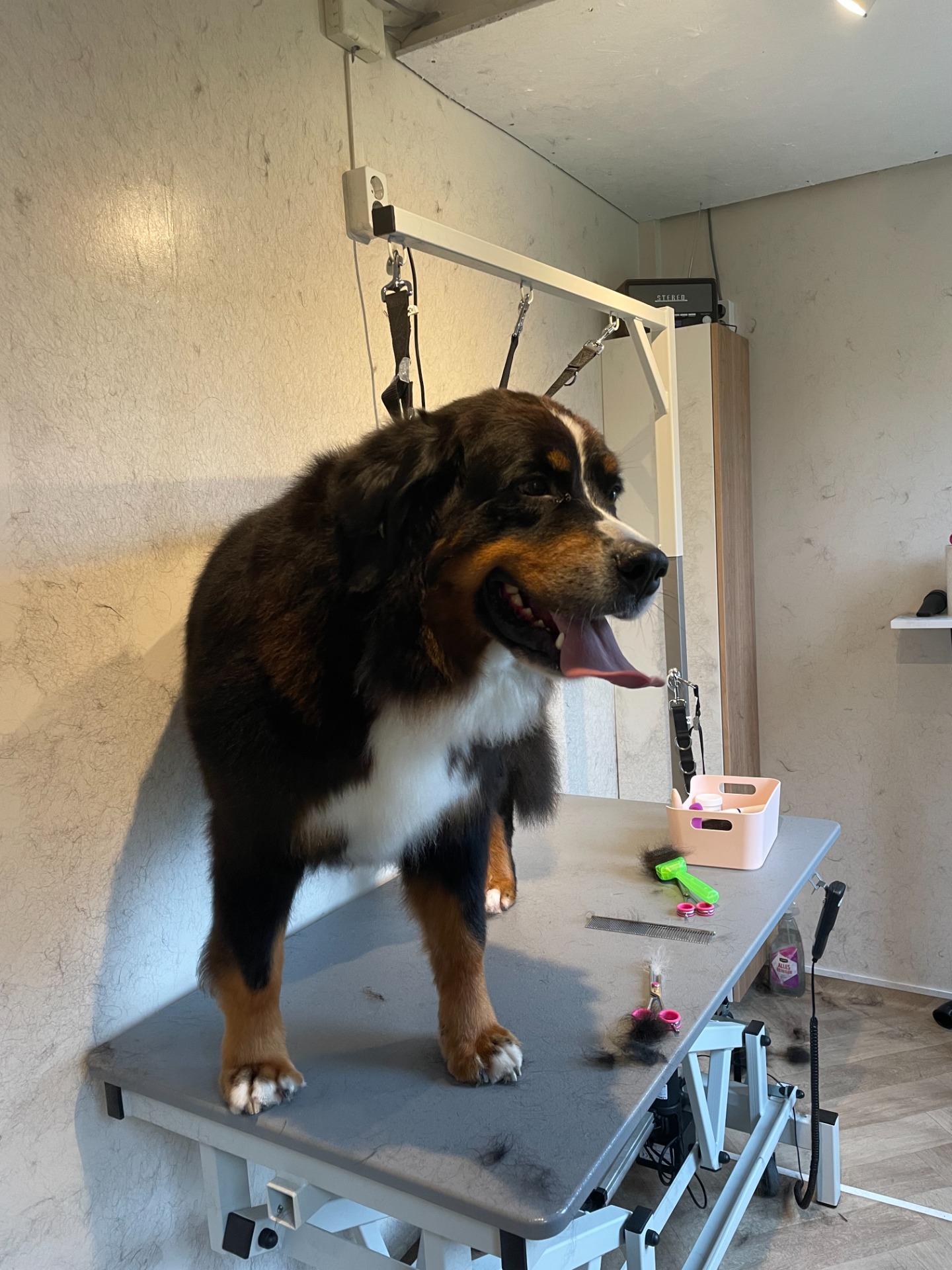Wat begon bij een duivenhok hebben mijn vriend, moeder en ik in drie weken en heel veel weekenden het omgetoverd tot een ruimte waar alle formaat honden (en hopelijk die van u!) getrimd kunnen worden op een professionele en vooral diervriendelijke manier.